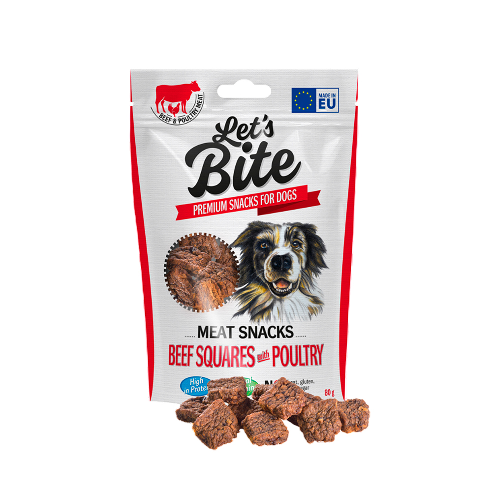 Cubos blandos con carne de res y ave, perfectos para premiar sin culpa. Alta palatabilidad y valor nutricional. Snack saludable de 80g para perros adultos.