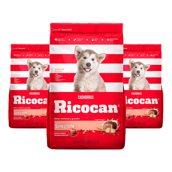 (3) Comida Cachorro Mediano y Grande Ricocan Carne y Leche 1kg