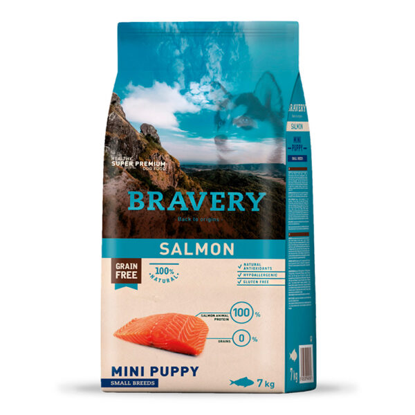 Comida para Perro Cachorro Razas Pequeñas Bravery Libre de Grano Salmón 7kg
