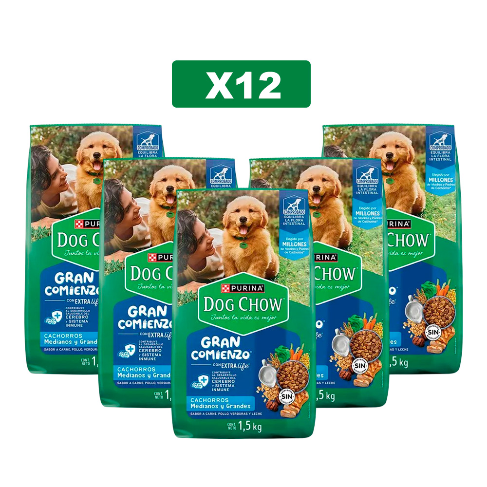 (12) Comida Cachorros Mediano y Grande Purina Dog Chow 1.5kg