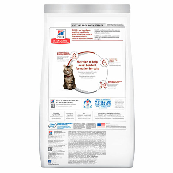 El alimento seco para gatos Hill’s Science Diet Hairball Control Adult 7+ proporciona nutrición para ayudar a evitar la formación de bolas de pelo en gatos maduros.