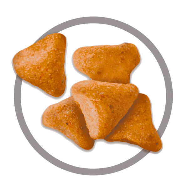 Croquetas secas elaboradas con fibra natural para reducir cómodamente las bolas de pelo en gatos senior.