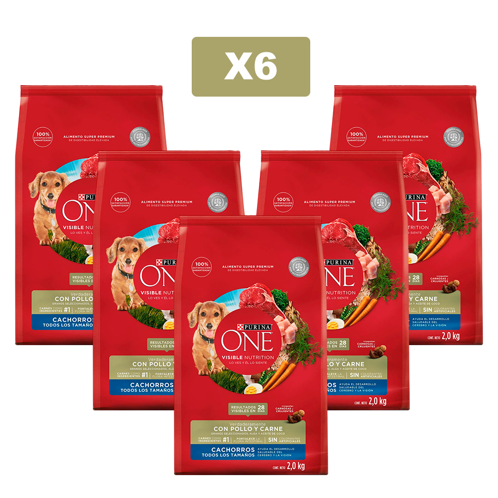 (6) Comida para Cachorro Purina One Pollo y Carne 2kg