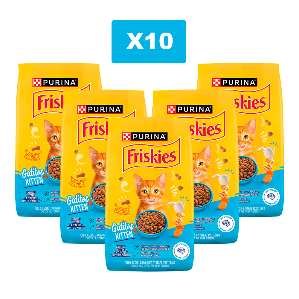 FRISKIES® es un alimento 100% completo y balanceado para gatos desde el destete hasta los 12 meses de edad.