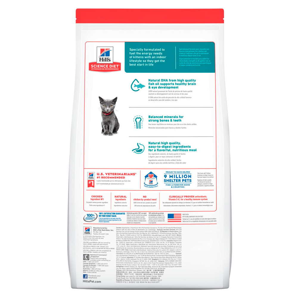 El alimento seco Hill’s Science Diet Indoor Kitten está especialmente formulado para abastecer las necesidades de energía de los gatitos con un estilo de vida de interiores para que tengan el mejor comienzo en la vida.