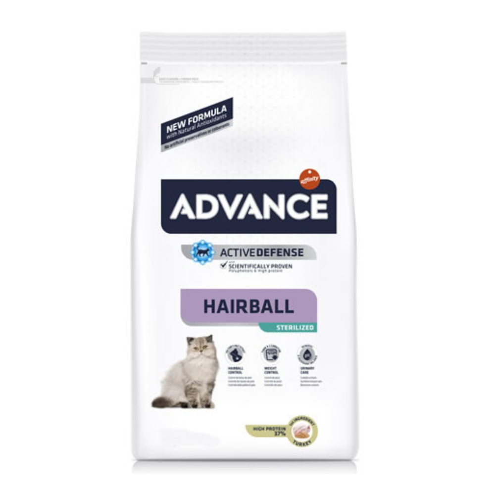 La comida para gatos Advance esterilizados Hairball también es adecuada para aquellos gatos con problemas de bolas de pelo, ya que reduce en mayor medida la formación de las mismas y ayuda al felino a tener una digestión sana.