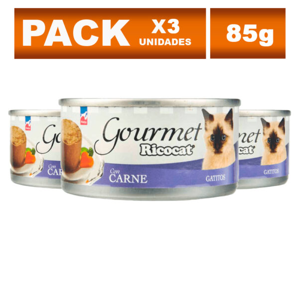 (3) Comida para Gato Ricocat Adulto Gourmet Paté de Carne 85g x3