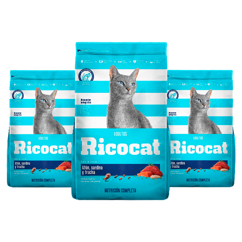 Comida para Gato Ricocat para Adulto de Atún, Sardina 1kg x3