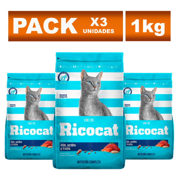 (3) Comida para Gato Ricocat para Adulto de Atún, Sardina 1kg