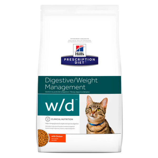 Los nutriólogos y veterinarios de Hills® desarrollaron la nutrición clínica Prescription Diet® w/d®. especialmente formulada para apoyar el manejo de peso de su gato. De hecho. w/d está clínicamente probado para condiciones que responden a la fibra.