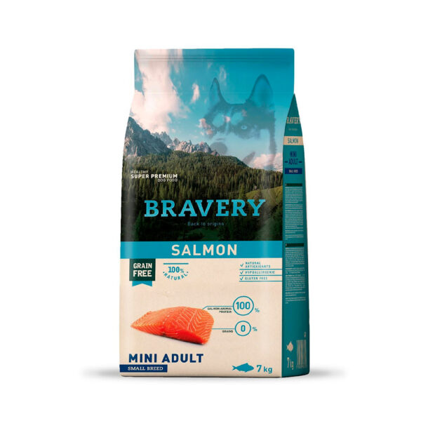 Comida para Perro Adulto Raza Pequeña Bravery Libre de Grano Salmón 7kg