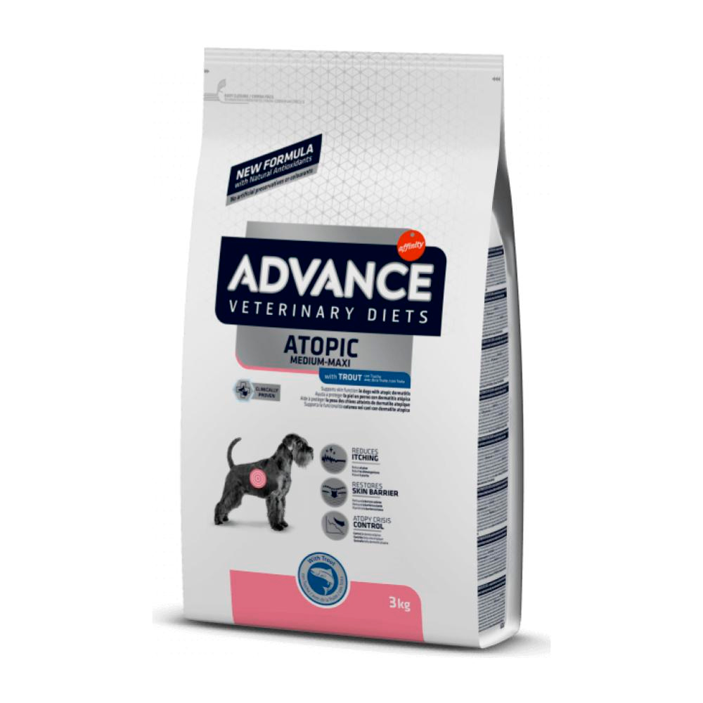 Alimento veterinario para perros con dermatitis atópica o sensibilidad cutánea. Contiene proteínas hidrolizadas y ácidos grasos omega 3 y 6. Bolsa de 3kg.