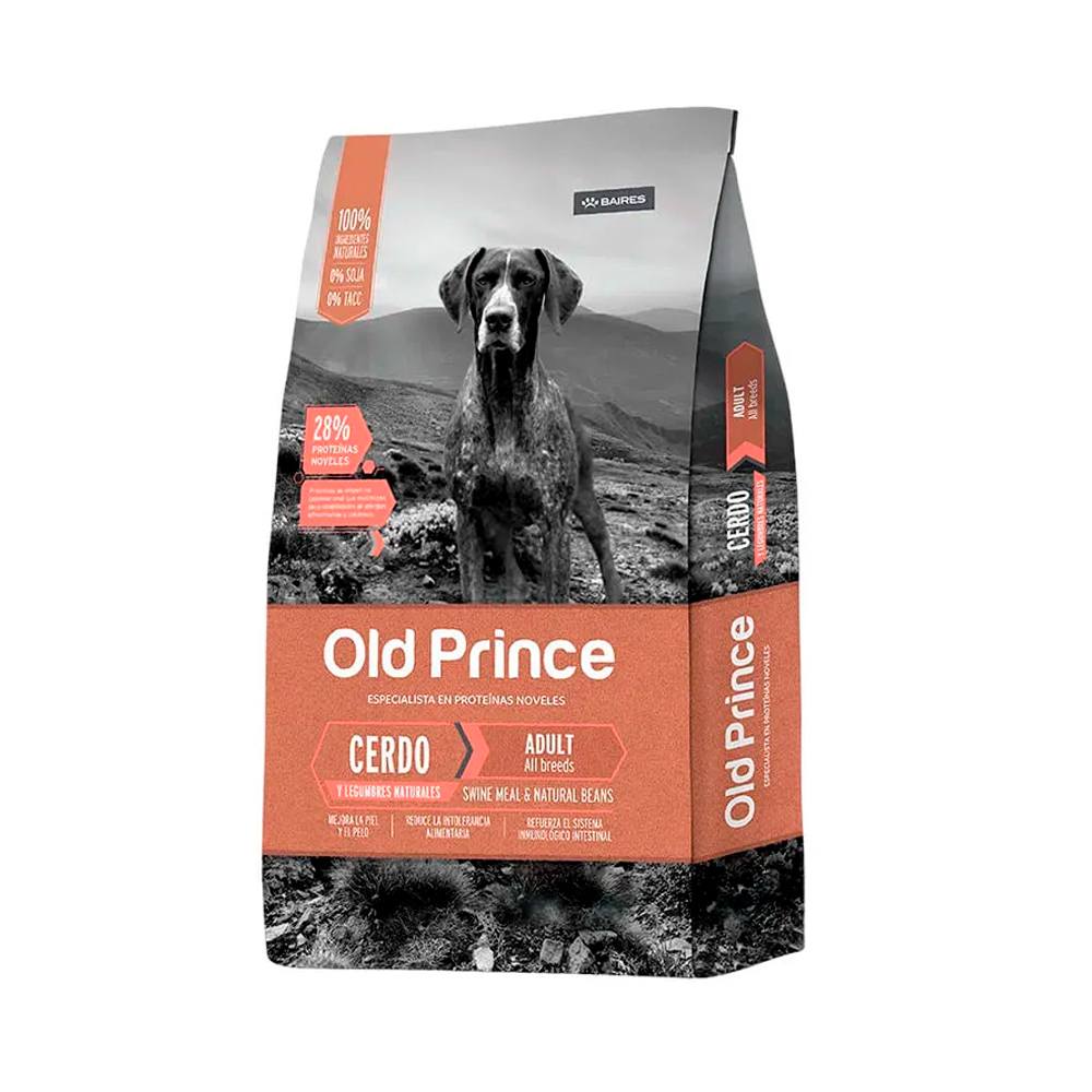 Informacion del Producto: El Alimento Old Prince Novel Cerdo Y Legumbres para Perro Adulto está diseñado para satisfacer todas las necesidades nutricionales de los perros adultos a partir del año de edad. Su fórmula se destaca por usar una proteína novel como el cerdo, en conjunto con hidratos de alta calidad encontrados en las legumbres, lo que reduce los riesgos a problemas de intolerancia alimenticia. Caracteristicas: Incluye aceite de pescado (fuente de Omega 3 y 6) para mejorar la piel y el pelo de tu mascota. El uso de proteínas noveles reduce la intolerancia alimentaria. Su alta concentración de prebióticos (FOS y MOS), junto a las Vitaminas B6 y B12, refuerza el sistema inmunológico de tu mascota. Ficha Técnica: Comida de Mascotas Marca Old Prince Contenido 3 KG