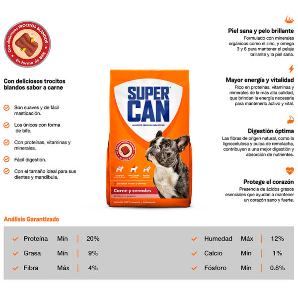 (1) Comida para Perros Supercan Raza Pequeña Adulto de Carne 3kg