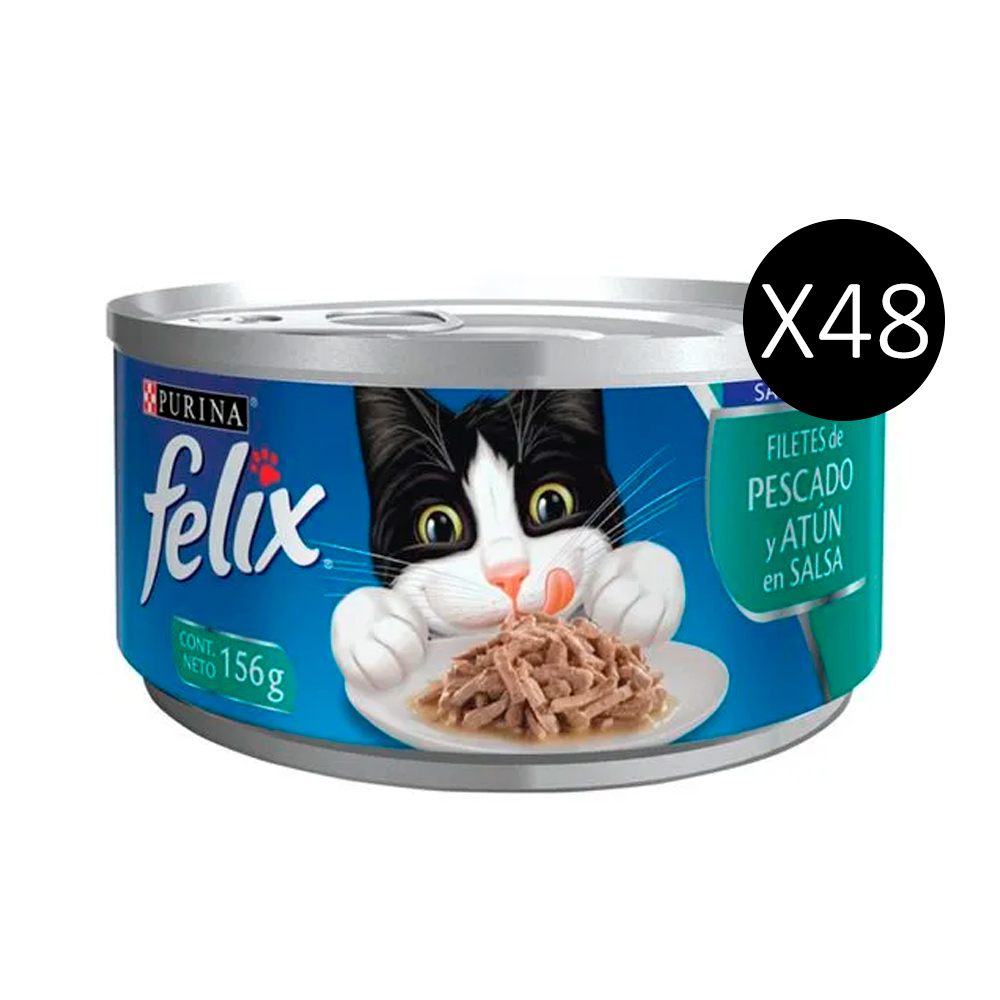 Comida paraGato Felix Filetes de Pescado y Atun 156gr x48un
