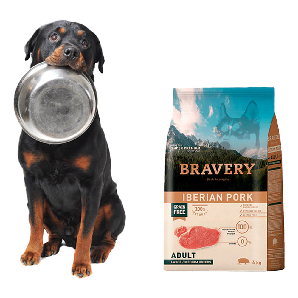 Comida para Perro Adulto Raza Grande Bravery Libre de Grano Cerdo Ibérico 4kg