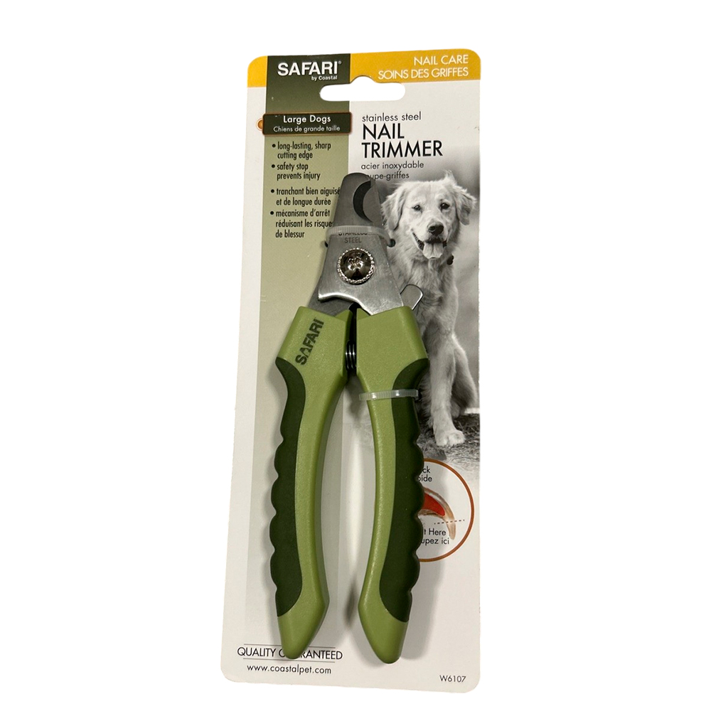 Cortaúñas de tipo guillotina ideal para razas medianas y grandes. Mango antideslizante y hoja de acero inoxidable para corte seguro.