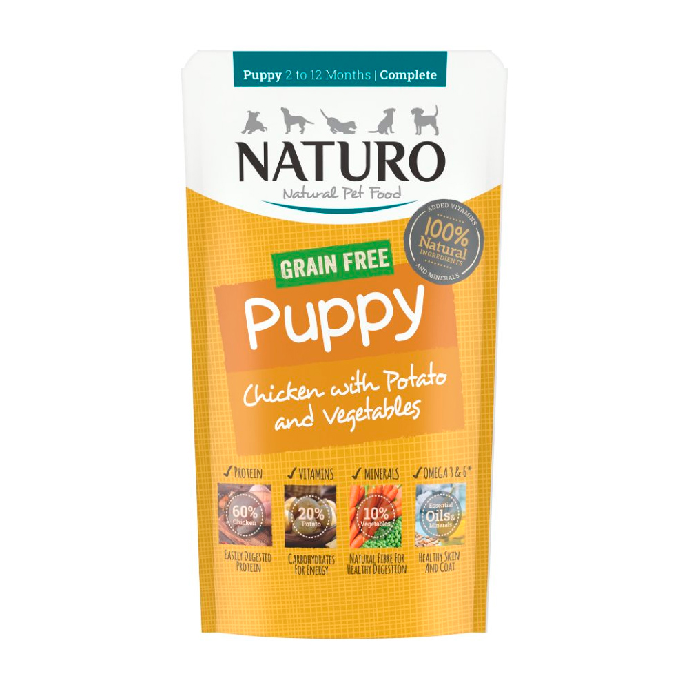 • Naturo Mini Pollo, Papa y Vegetales – Libre de Granos para perro cachorro (2 meses – 1 año) 150GR