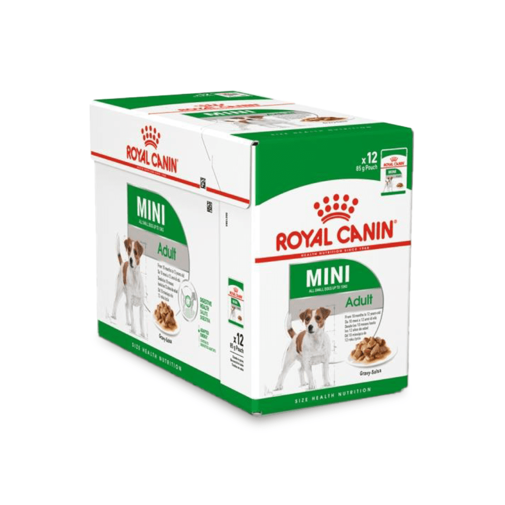 Mini Adult en salsa de ROYAL CANIN® ha sido específicamente formulado teniendo en cuenta las necesidades nutricionales de tu perro adulto de raza de tamaño mini. Mini Adult en salsa de ROYAL CANIN® es un alimento adecuado para todos los perros de tamaño pequeño de entre 10 meses y 12 años y un peso de hasta 10 kg. La formulación con nutrientes específicos de Mini Adult en salsa de ROYAL CANIN® favorece la salud digestiva de tu perro y le ayuda a mantener el equilibrio de la flora intestinal. El contenido energético. meticulosamente adaptado. de Mini Adult en salsa de ROYAL CANIN® ayuda a los perros de razas de tamaño pequeño como el tuyo a mantener su peso ideal. Además. Mini Adult en salsa de ROYAL CANIN® también está enriquecido con nutrientes que favorecen la salud cutánea y el buen estado del pelo como. por ejemplo. los ácidos grasos omega 3 EPA y DHA.