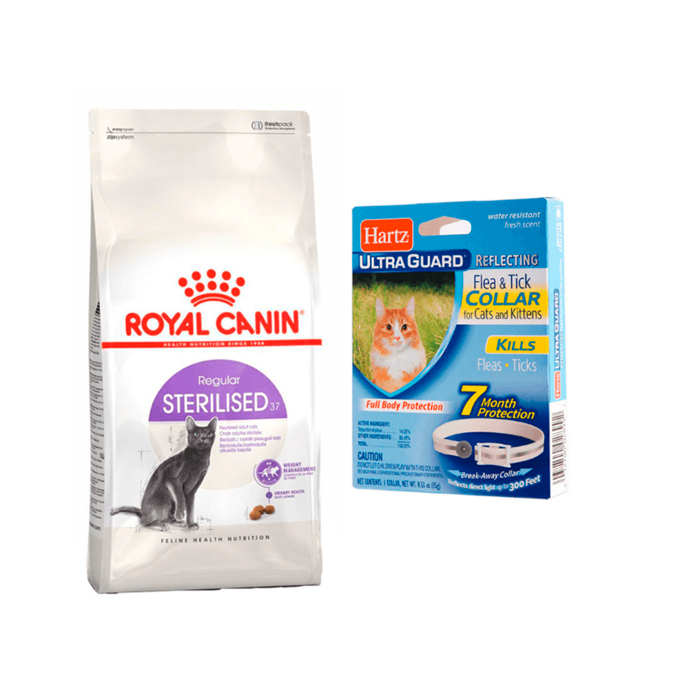 Pack especializado para gatos con problemas urinarios. Incluye alimento Royal Canin Urinary 2 kg + collar antipulgas Hartz.