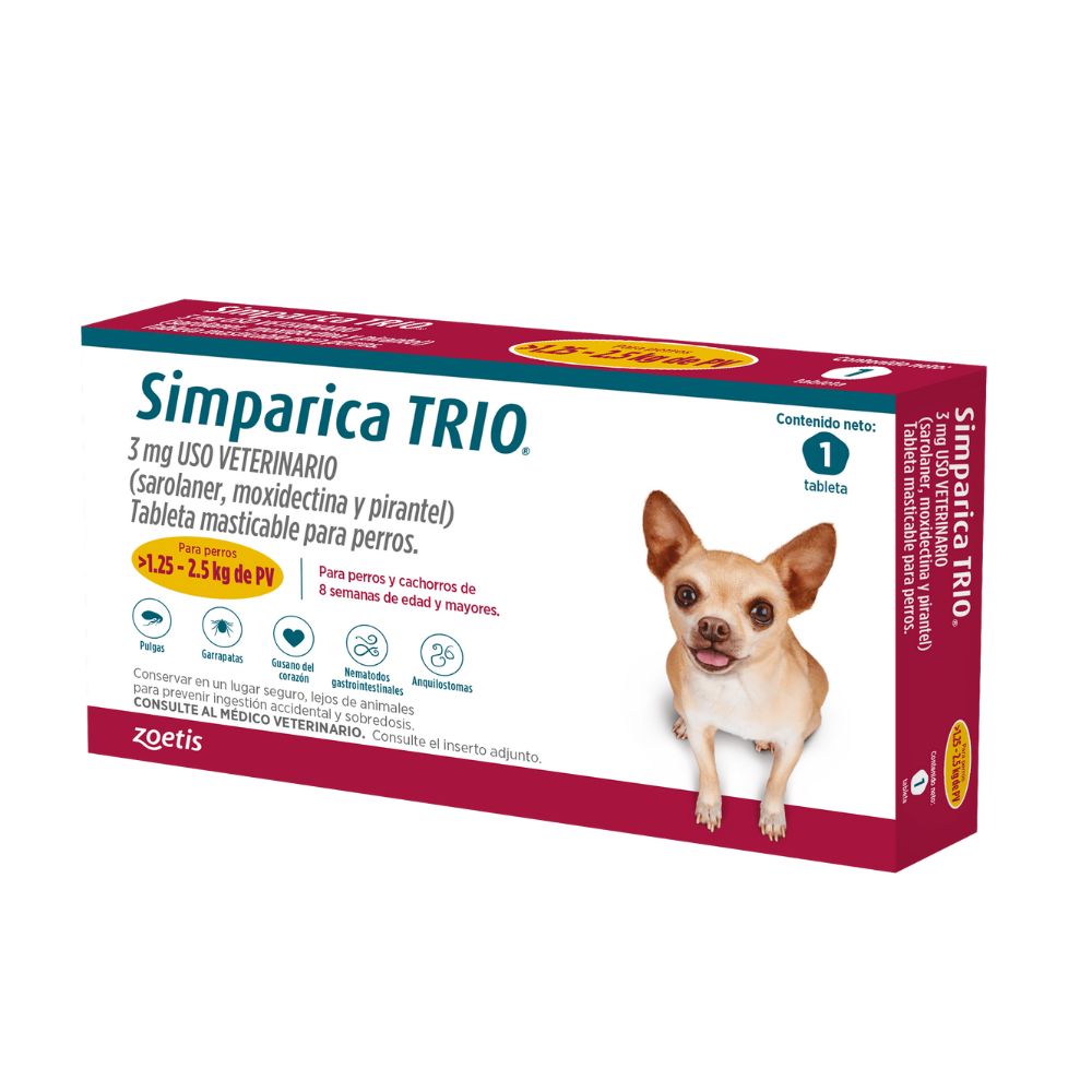 SIMPARICA TRIO 03 MG GOLD (1.3 A 2.5 KG) X3TAB