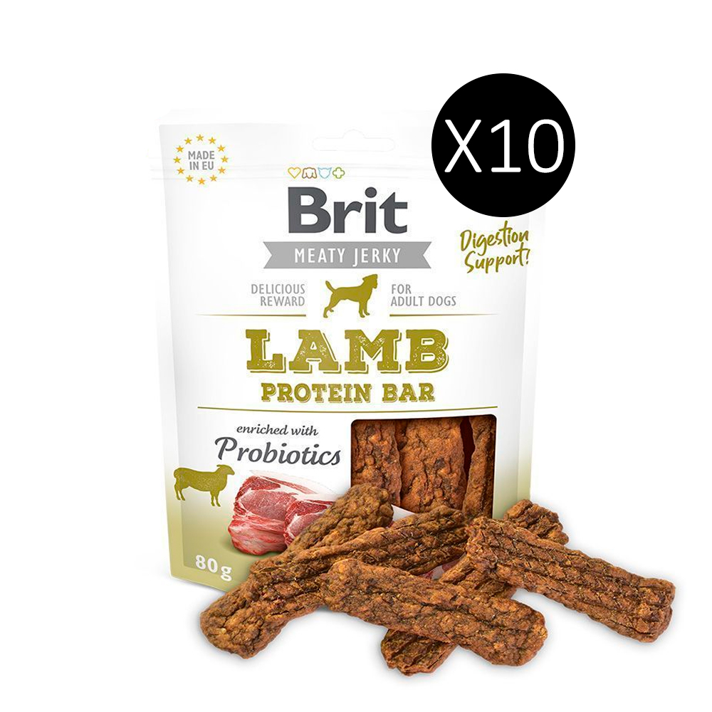 Barras ricas en proteína de cordero, perfectas como suplemento de energía o recompensa. Pack de 10 unidades.