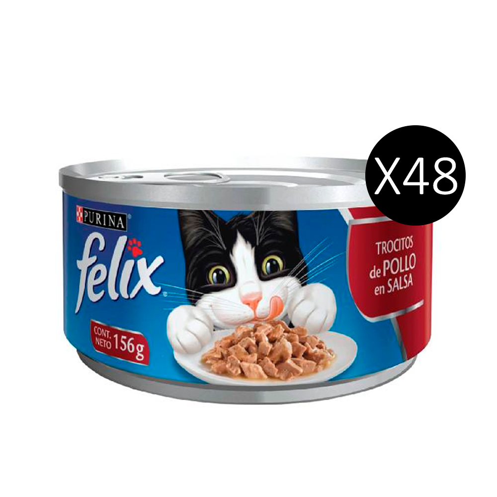 Alimento húmedo con trozos reales de pollo en salsa. Aporta hidratación y proteínas de calidad. Pack económico x48 latas.